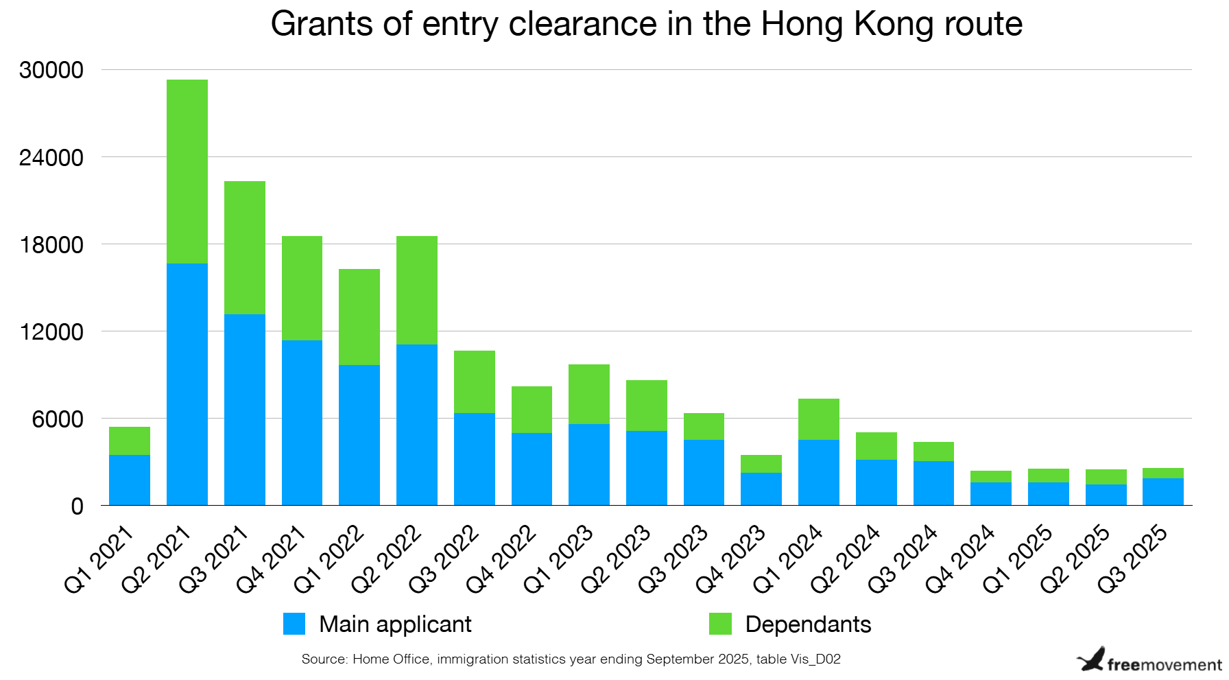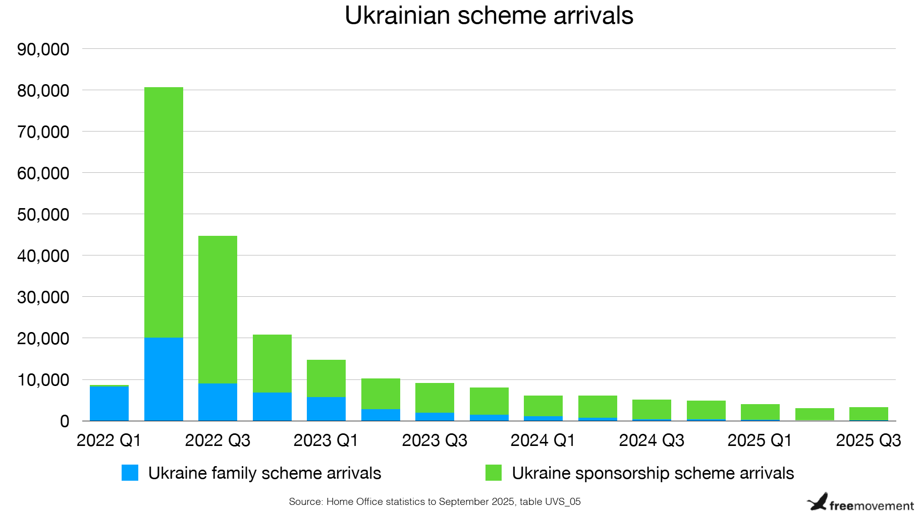 Unless indicated otherwise, figures come from the Home Office statistics for the year ending September 2025. We have focussed on the period 2020 to the end of September 2025, as it is during this period that most of the bespoke schemes that are currently open were set up.