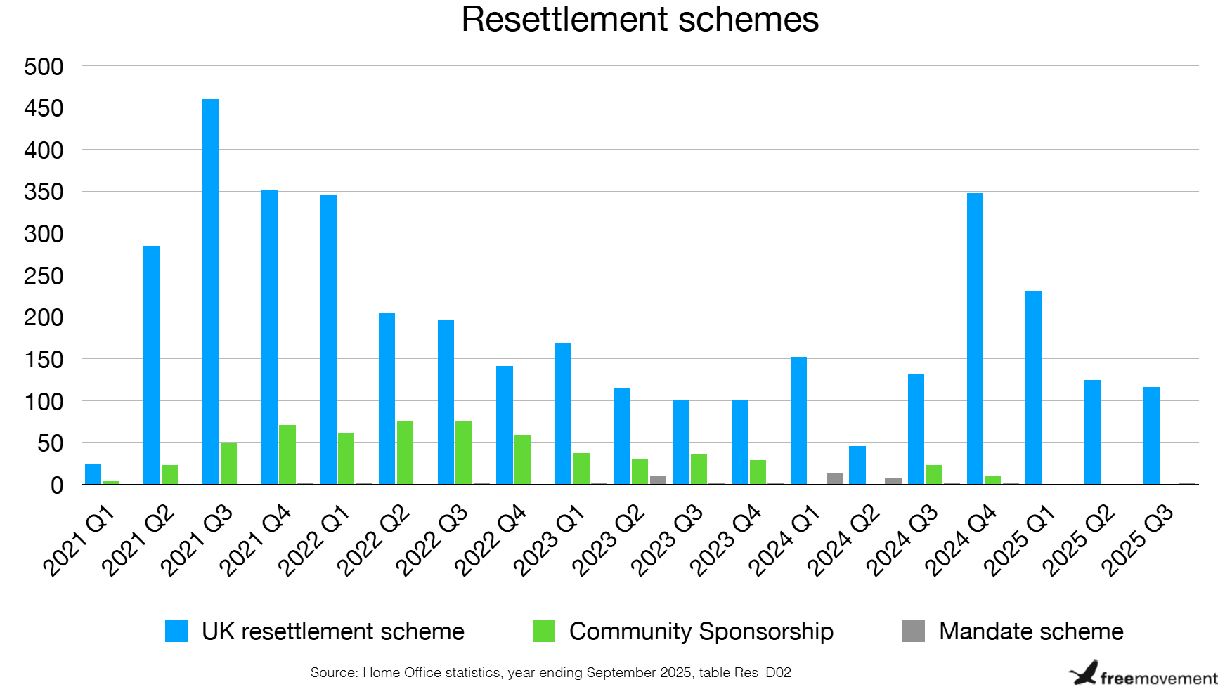 The current status of this scheme is unclear, as it appeared from a parliamentary debate in 2023 that it was closed to new referrals. In another debate on 27 March 2025 the government said that it was yet to agree a quota for the route in 2025. In November 2025 the government made a vague announcement about maintaining capped routes for resettlement, with the Home Secretary later admitting that numbers were expected to be in the “low hundreds”.